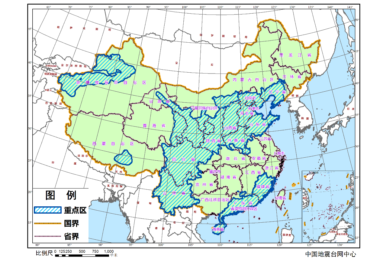 产出震级范围:中国大陆地区M≥4.0、台湾地区M≥5.5。