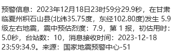 表1 2023年12月18日甘肃积石山6.2级地震预警信息产出情况