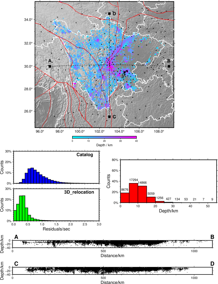 基于三维地震波速度模型和台网正式编目目录,对全国范围内2010年-2023年的地震目录进行了重新定位,获得1.0级以上地震的重新定位结果。速度模型采用:中国地区岩石圈三维高分辨率速度模型USTClitho1.0(Xin, et al. 2019)。地震定位利用EDT(Zhou 1994; Font et al. 2004; Lomax 2014)方程为目标函数,采用非线性网格搜索法求最优解。地震活动性目录广泛应用于地震安全性评价、地震研究等领域。