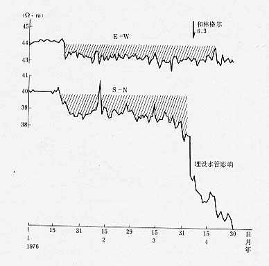 图24 太原台(Δ=261km)视电阻率日均值曲线(据山西省地震局)