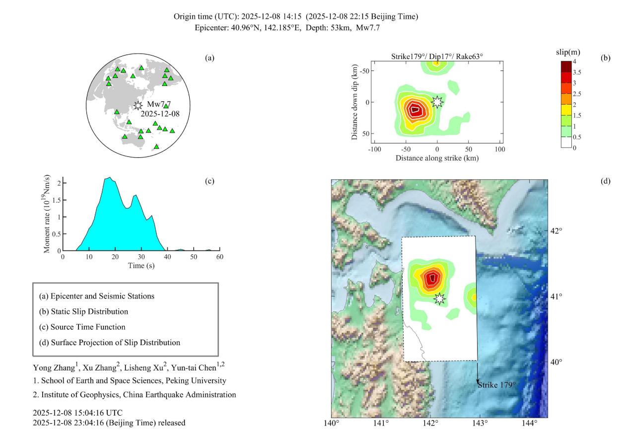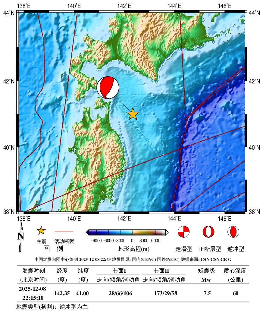 2025年12月8日日本本州东部附近海域7.5级地震应急产品发布
